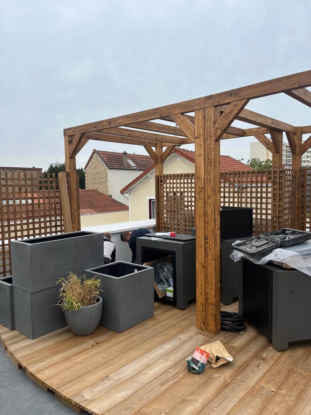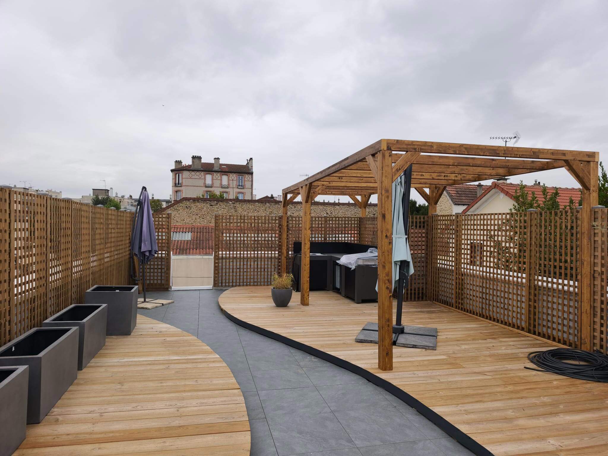 Aménagement pergola extérieure d'un rooftop de maison à l'ouest de Paris
